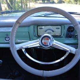 The Wagoneer featured here was donated to the Franschhoek Motor Museum by Mooiplaats resident Joh Groenewald and is one of the first to have been assembled in SA. Purchased new in 1965, it is still in its original light-green paint and is fitted with a Tornado 230,5 ci (3,78-litre) straight-six, America’s first post-WW2 mass-produced overhead-cam engine. The all-iron motor was offered in two states of tune: with an 8,5:1 compression ratio it delivered 104 kW at 4 000 r/min and 285 N.m of torque at 1 750 (as fitted to FMM’s example), while the 7,5:1 cr version’s peak outputs dropped to 99 kW at 4 000 and 270 N.m at 2 400, respectively. Running on standard 7.10×15-inch tyres and with a 4,09:1 final drive ratio, a period road test achieved a 0-60 mph (96 km/h) time of 18,2 seconds, a standing-start quarter-mile time of 20,4 seconds and a top speed of just over 140 km/h. Steady speed fuel consumption ranged from 12,4 ℓ/100km at 48 km/h to 17,3 ℓ/100km at 96 km/h.