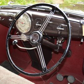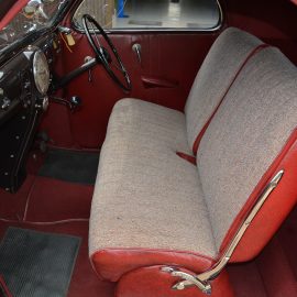 Suspension was by Henry Ford’s beloved transverse leaf springs front and rear, with a dead axle up front and torque tube at the rear that, contrary to the car’s styling, was seen as an outdated set-up when the car was introduced. Four-wheel drum brakes were cable-activated for 1936-38 models but from 1939 they were hydraulic.