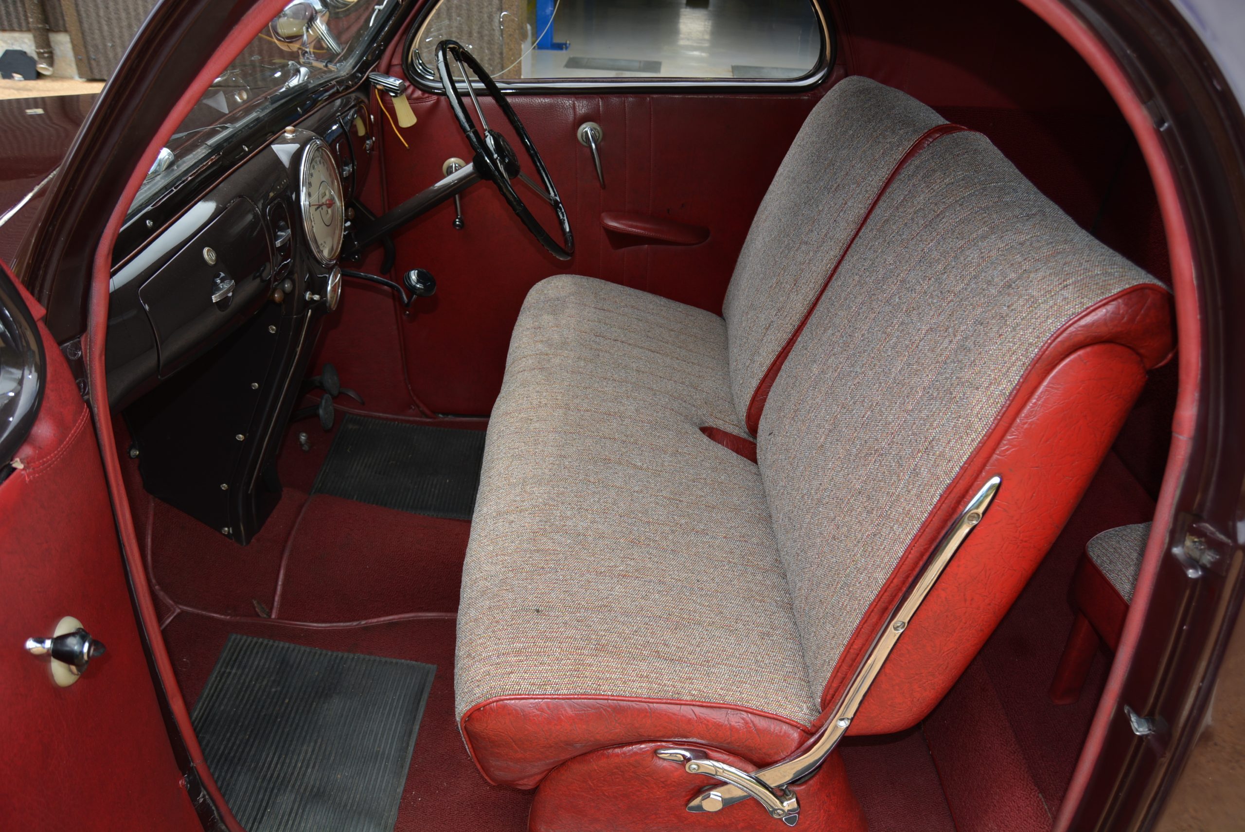 FMM’s 1939 Lincoln Zephyr is a 1939 two-door Coupé, model code H-72, which is listed in journals as being a six-seater but the seating belies that capacity. The front seat is a bench with split backrests to allow access to the rear where, unusually, there are two sideways-facing stools, which, combined with the sloping roofline, is hardly a comfortable place to be, especially for adults. A 3+2 with a difference… It sold for $1 320 – the cheapest variant in the six-model line-up for 1939.