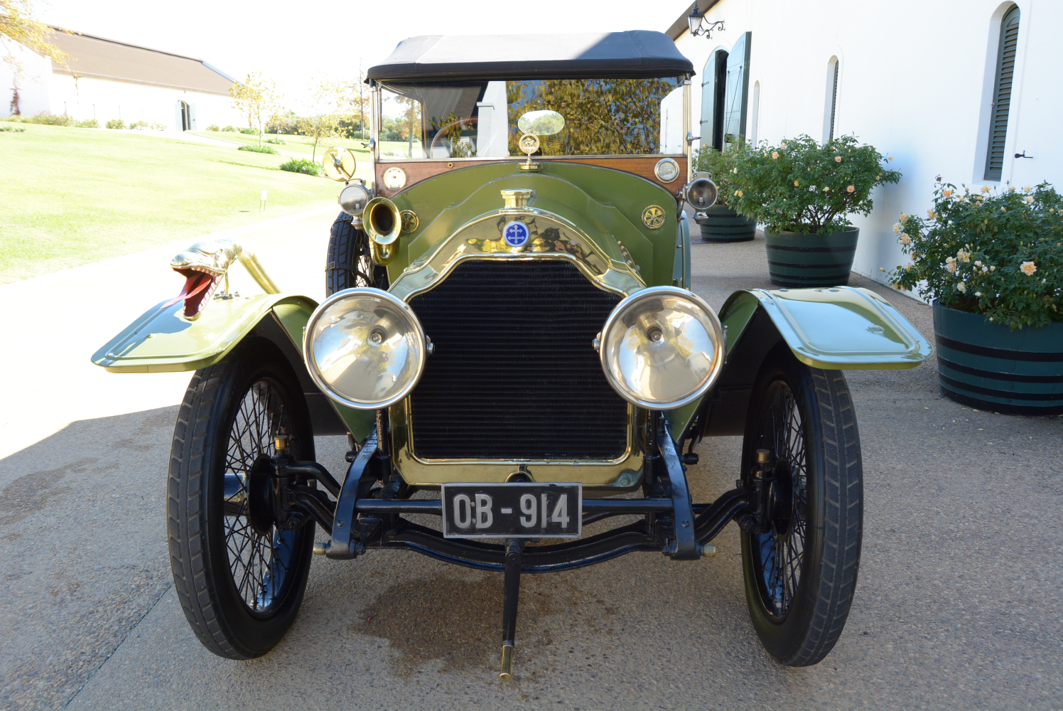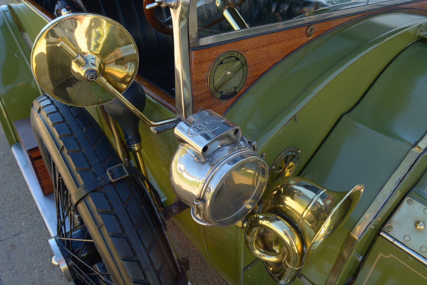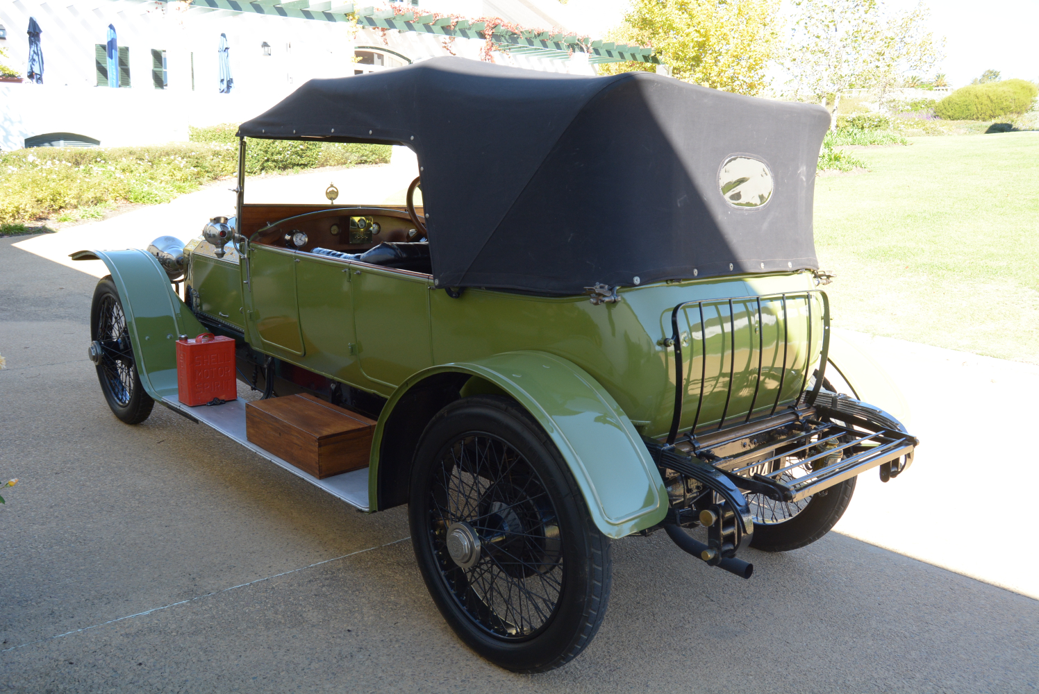 Once restored and resplendent in its burgundy paintwork, Huddlestone used it in many social and competitive events before being persuaded to part with the car by another of South Africa’s eminent collectors, Waldie Greyvensteyn. Waldie had long wanted to own the car and continued to put it to good use before he, too, opted to restore it. The result is what you see here, now painted in a more dramatic shade of green and sporting an enormous, patented Boa Constrictor horn with its head – complete with forked tongue – mounted on the front mudguard and its flexible pipe tail extending to the bulb mounted just to the side of the windscreen. A quaint throwback to the car’s early safari exploits.