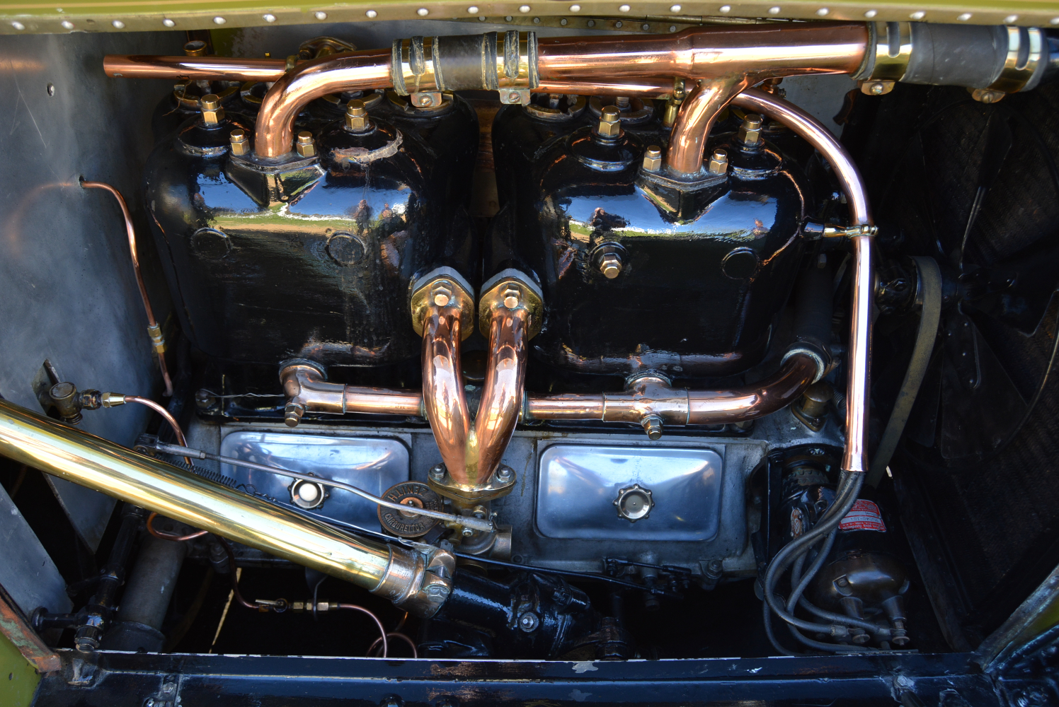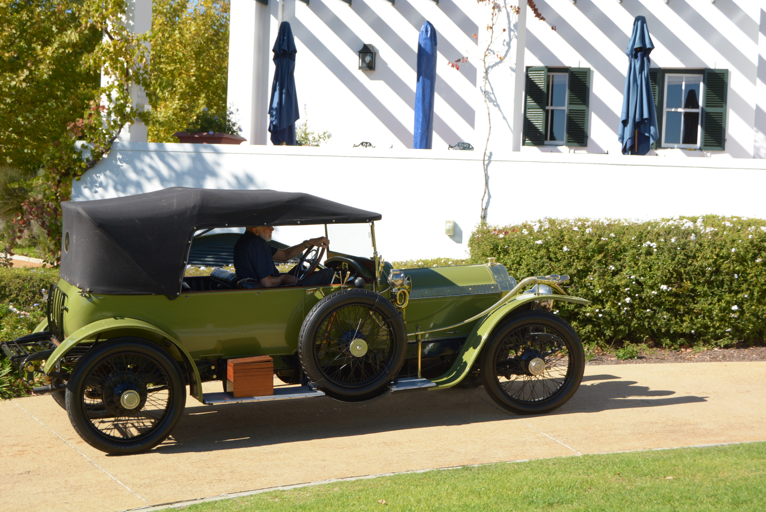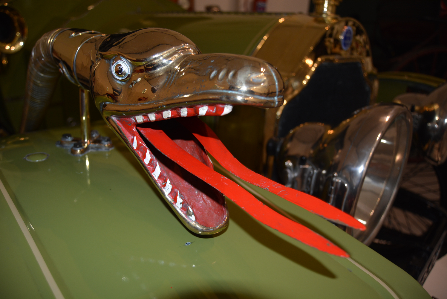 Once restored and resplendent in its burgundy paintwork, Huddlestone used it in many social and competitive events before being persuaded to part with the car by another of South Africa’s eminent collectors, Waldie Greyvensteyn. Waldie had long wanted to own the car and continued to put it to good use before he, too, opted to restore it. The result is what you see here, now painted in a more dramatic shade of green and sporting an enormous, patented Boa Constrictor horn with its head – complete with forked tongue – mounted on the front mudguard and its flexible pipe tail extending to the bulb mounted just to the side of the windscreen. A quaint throwback to the car’s early safari exploits.