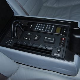 The car was more than safe transport: it acted as a place of sanctuary where Madiba could gather his thoughts while travelling from venue to venue. A presidential communications console is mounted in the rear-seat fold-down armrest, and in the left-front seat-back there is a fold-down tray and a clip-out padded clip board. Foot rests are provided and the long wheelbase affords plenty of room to stretch out and relax. It is the only known car to have been signed by Mr Mandela and the facia section was removed and mounted and displayed in the BMW boardroom.