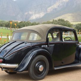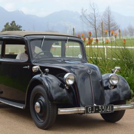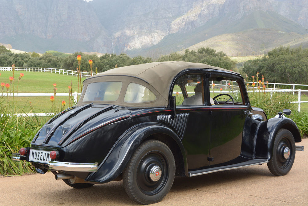 The presence of FMM’s open-top sedan is quite a story. Documentation exists that the car – chassis number 105803 – was delivered to Mercedes-Benz’s distribution agency in London on 10 October 1934, from where it was sold and passed through the hands of a number of owners in the UK. In a feature article published in the December 1984 issue of CAR magazine, Herman Fourie tells of when in 1952 in Pretoria, its then owner, a Dr Wille, sold it to a young medical student, a Mr J du Toit, who eventually moved to Paarl before he sold it on. But du Toit’s memories of the 130H were not lost and in 1976 he saw this car advertised in a British motoring magazine. But despite lengthy negotiations he could not purchase the car, which was nearly scrapped before being bought and refurbished by an M-B enthusiast living in the Isle of Man. He was eventually persuaded to sell the car to the now Dr du Toit, and so it arrived in SA in a container. In 1985, the Heidelberg Motor Museum became aware of the car and in June made an offer to purchase, which was accepted. The Heidelberg collection was the foundation for FMM and the 130H has been part of the museum’s assets ever since.