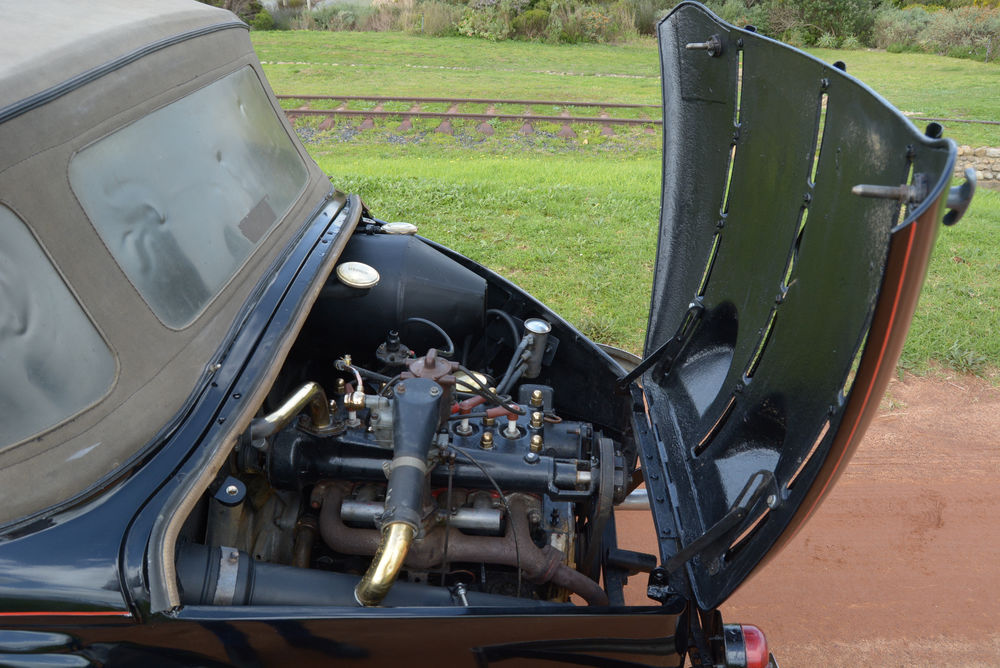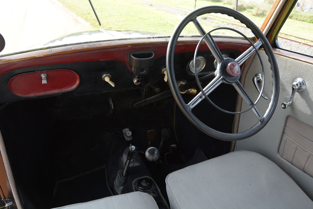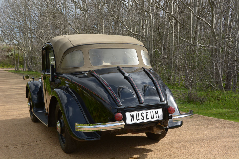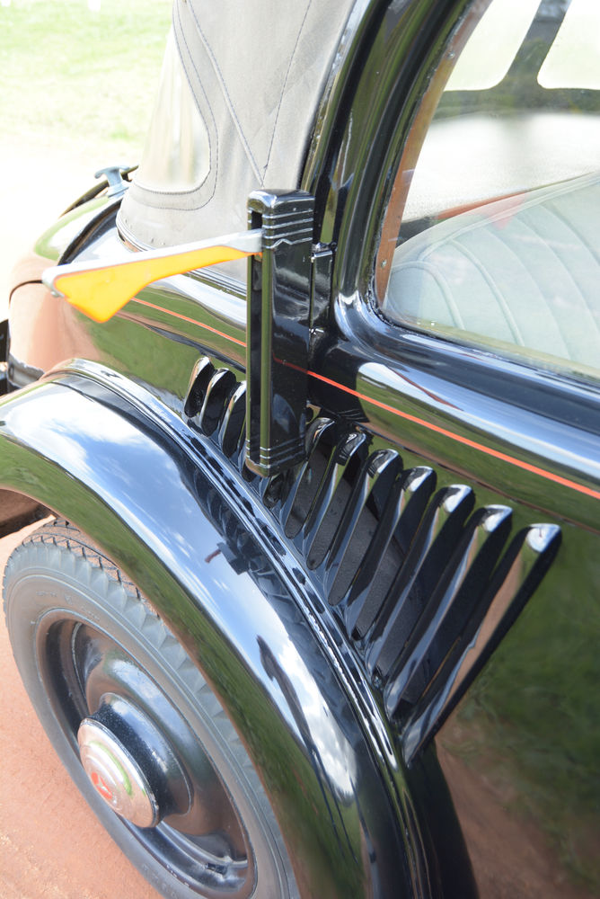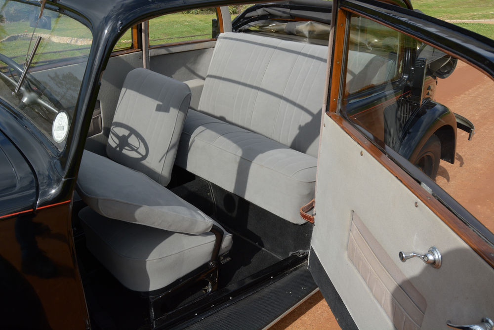Although the car was built in 1934 it would appear to be a near-1935 model because a small number of improvements for that model year are present on this car. The minor changes included revisions to the instrument panel with two large circular gauges with ivory-coloured dials positioned directly in front of the driver, intake louvres in the side panels below the rear side windows that channelled air towards the radiator positioned above the rear axle line, and the rounded engine lid featured three longitudinal vents with cover plates, which gave the vehicle a distinctive and unmistakable rear characteristic. Standard features from inception included a foot-operated one-shot lubrication system, a lockable steering column, a cigarette lighter and, unusually for such a car of the time, a cabin heater.