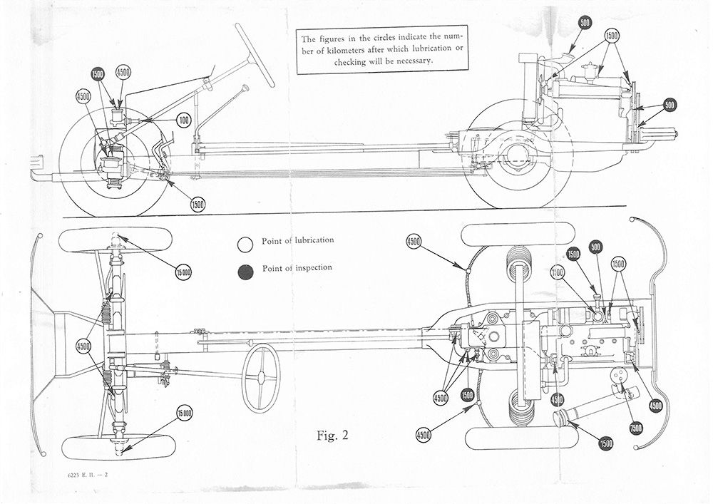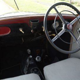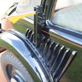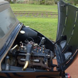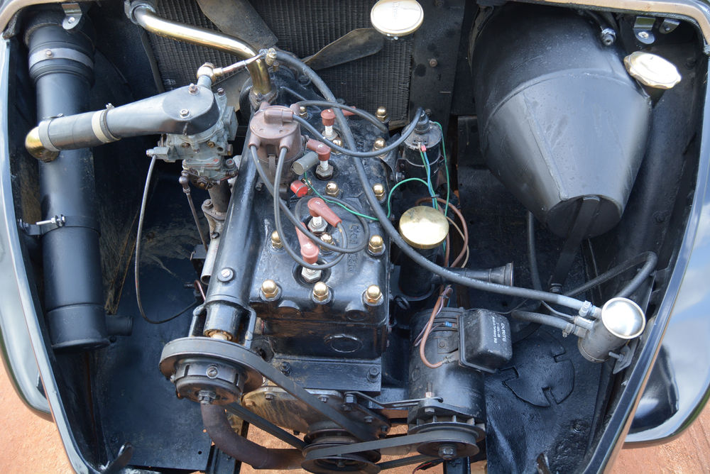 The motor fires up easily and although hardly a powerhouse, it propels the car along easily both in traffic and out on the open road, thanks to the somewhat sophisticated gearbox. The lower three speeds and reverse are laid out in a conventional H-gate, but once in third – to the right and down – overdrive fourth can be selected by moving the lever to the right and up, and when the driver is ready to engage the gear, simply depress the clutch, just as with a regular pre-selector ’box. Neat… Manoeuvrability is easy thanks to nicely-weighted rack-and-pinion steering. Yes, the ride is compliant, and as for the handling, discretion is the better part of valour and I was not prepared to put the common claims of swing-axle instability to the test. Driving an 85-year-old car today is something to enjoy in a relaxed fashion.
