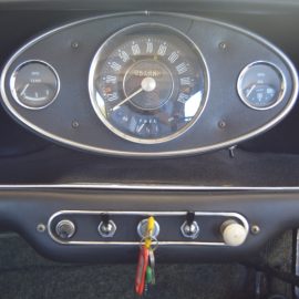 However, even though this car’s credentials are somewhat confusing, the bottom line is that it is a genuine 1275 Cooper S, and has a claim to fame. Sports Car Club of SA badging on the fenders is testimony to the fact that at some point this car achieved 104,251 mph (167,775 km/h) at a top speed day held at the old Kyalami circuit. Today, the car still has plenty of go and brings a smile to the faces of everyone who drives it. Although the gearshift is a bit clunky (early Mini remote shifts were renowned for being problematic), frequent cog swopping to keep the motor buzzing is not really necessary. The Mini’s legendary roadholding is so good that tackling bends requires only occasional lifting off the accelerator – the Mini’s inherent balance is superb. What came as a surprise is how relatively soft the ride is on the fluid-based Hydrolastic rubber-cone suspension that was invented by British rubber engineer Alex Moulton. Remember the Moulton bicycle of the ’60s?