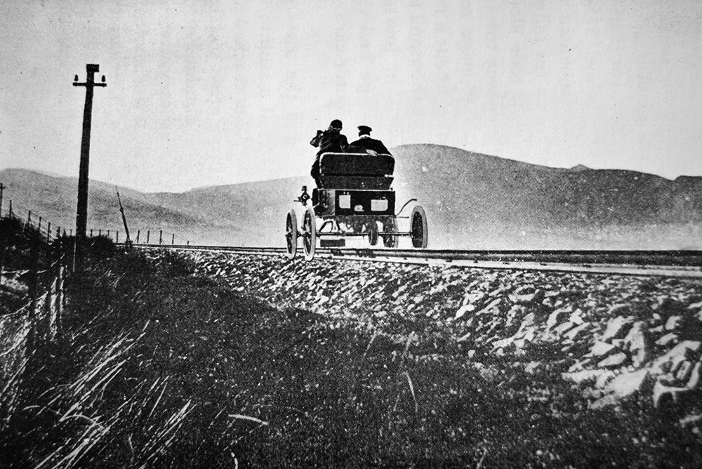 The Olds set off at a smart pace heading towards a viaduct and waterfall and the first gradient was 1-in-8, which was easily overcome. A special train had been assigned to follow the Olds progress and render any assistance necessary, but it was left behind as the little Olds easily snaked its way through the numerous sharp bends. The chasm by the waterfall left no margin for error and once through this daunting part of the track, Letts and Jarrott continued to be jolted along as the car rode over the sleepers towards the next station, Hebron, situated 2,5 km from the start and more than 300 metres above sea level. A brief stop was necessary to lift the 360 kg car over the rail track’s points. The journey time so far was 14 minutes.