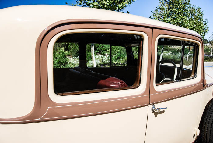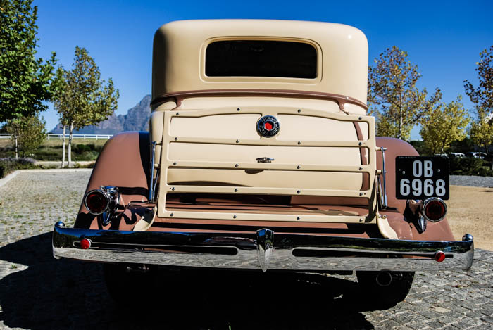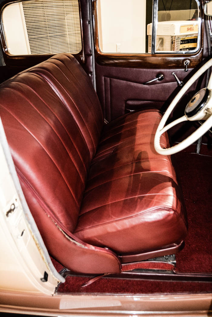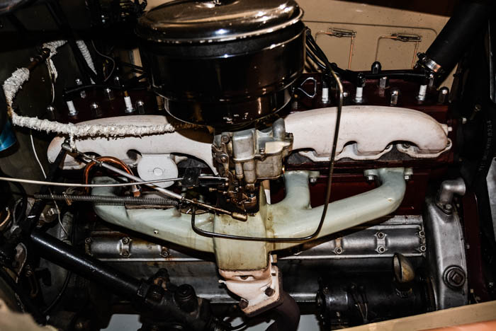 Built for the right-hand drive Canadian market, the FMM’s Eleventh Series two-door, two-tone, pin-striped sedan is an imposing piece of machinery and seemingly quite unusual, built on a 147-inch (3 734 mm) wheelbase that was the common platform for a number of body styles at the time. The 384,8 cubic inch ( 6,3-litre) side-valve engine was apparently derived by mating a two-, a four- and another two-cylinder in line to create a straight-eight, which was a most unusual engineering approach. As a result, the engine has an odd firing order but is nevertheless smooth in operation.