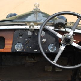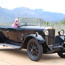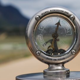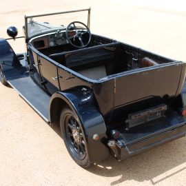 Devoid of hood and side glass, looking over the big steering wheel along the shapely bonnet,  the radiator cap temperature gauge as doubled up as a ‘sight’ to the road ahead. It was easy to imagine being in the between-war years, bowling along to the purring accompaniment of the sweet exhaust, travelling the countryside and heading for a summer picnic spot with a full complement of passengers sharing the experience of the freedom of the road. The firm suspension and impressive brakes encouraged a ‘press on’ approach, with only the rather large turning circle (the wheelbase is 2 819 mm) needing consideration.  An overheating coil temporarily brought our photoshoot to a halt, but no matter – ‘get out and get under’ as the old song advised.