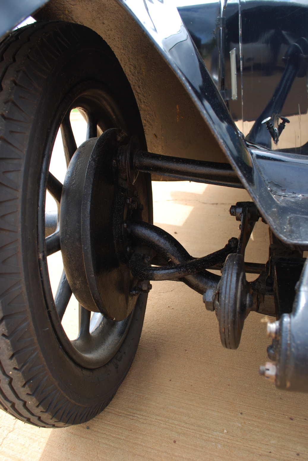 Devoid of hood and side glass, looking over the big steering wheel along the shapely bonnet,  the radiator cap temperature gauge as doubled up as a ‘sight’ to the road ahead. It was easy to imagine being in the between-war years, bowling along to the purring accompaniment of the sweet exhaust, travelling the countryside and heading for a summer picnic spot with a full complement of passengers sharing the experience of the freedom of the road. The firm suspension and impressive brakes encouraged a ‘press on’ approach, with only the rather large turning circle (the wheelbase is 2 819 mm) needing consideration.  An overheating coil temporarily brought our photoshoot to a halt, but no matter – ‘get out and get under’ as the old song advised.