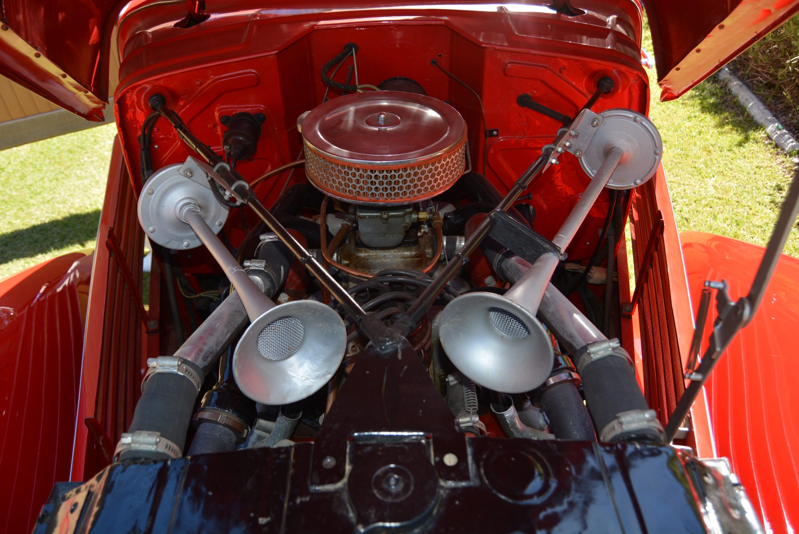 While its FWD layout was an American first, it had an archaic tube rear axle with semi-elliptic rear springs. Power came from an aluminium 289 ci (4 736 cc) side-valve Lycoming V8, which, with a single Stromberg carburettor, delivered 125 hp (93 kW) at 3 500 r/min. Lycoming was part of the Auburn-Cord-Duesenberg organistaion. The Bendix electro-vacuum pre-selector four-speed transmission extended in front of the engine, like on a Traction Avant Citroën. This set-up eliminated having a transmission tunnel. Gemmer unassisted steering – with a huge 6,2-metre turning radius – was fitted, along with hydraulic four-wheel drum brakes.
