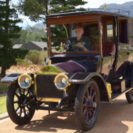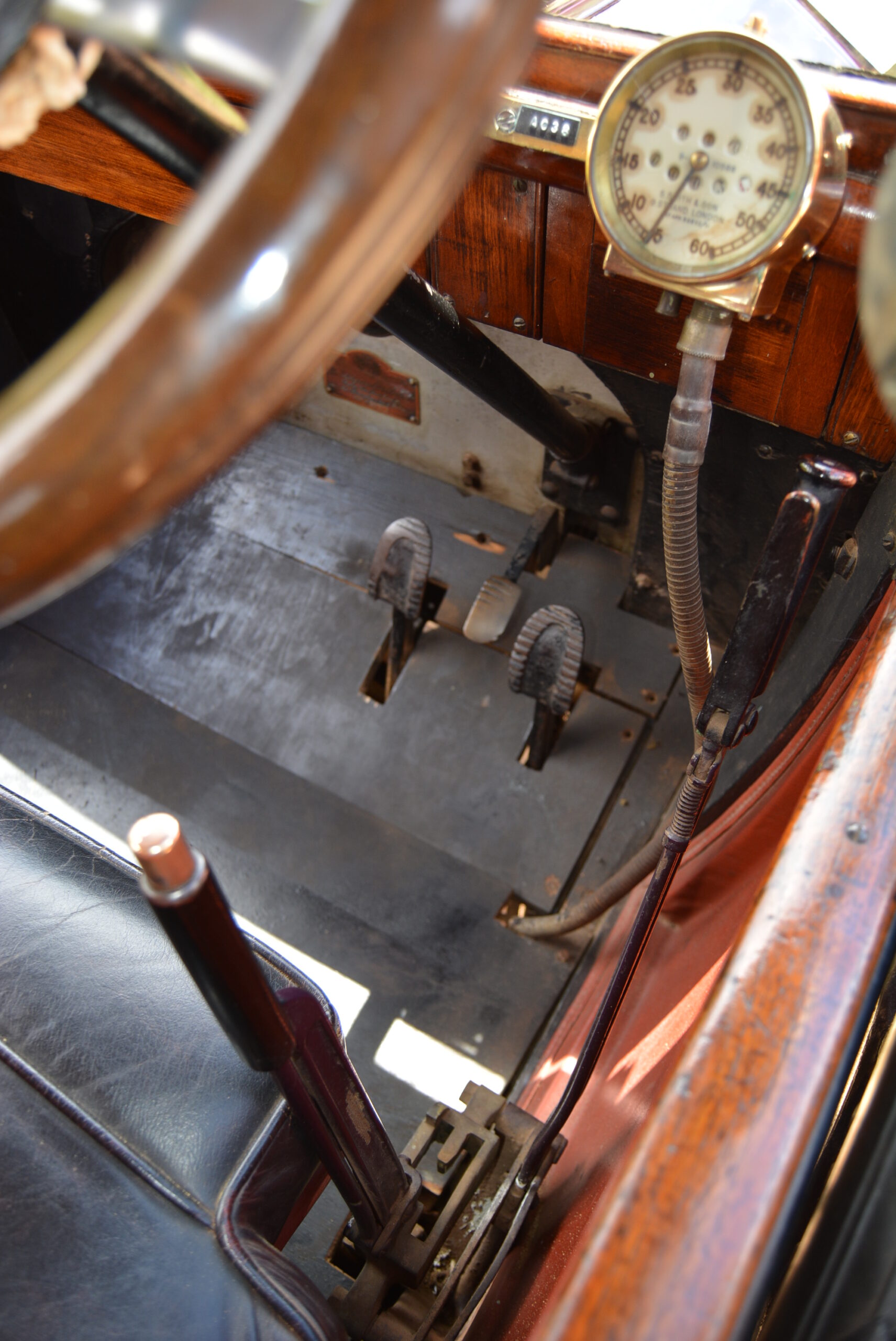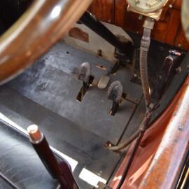 The 12-16 is powered by a 2 226 cm3 four-cylinder side-valve engine with a single Zenith carburettor. The 12 refers to the RAC horsepower rating: the engine produced 15 hp (11 kW) at 1 800 r/min. Once the priming cocks have been utilised, the motor swings into life first turn of the crankhandle, and pulls away with enthusiasm thanks to a low first gear. Top – third – gear is high, leaving flexible second to bear the brunt of drive to the back axle. As regular readers will know, my long-legged frame is not commensurate with veteran and vintage ergonomics – the pedals are mounted very close together forcing me to drive shoe-less in order to operate the central accelerator, while the top of gear lever sits in the crook of my right knee. Ah, the joys of pioneering motoring…