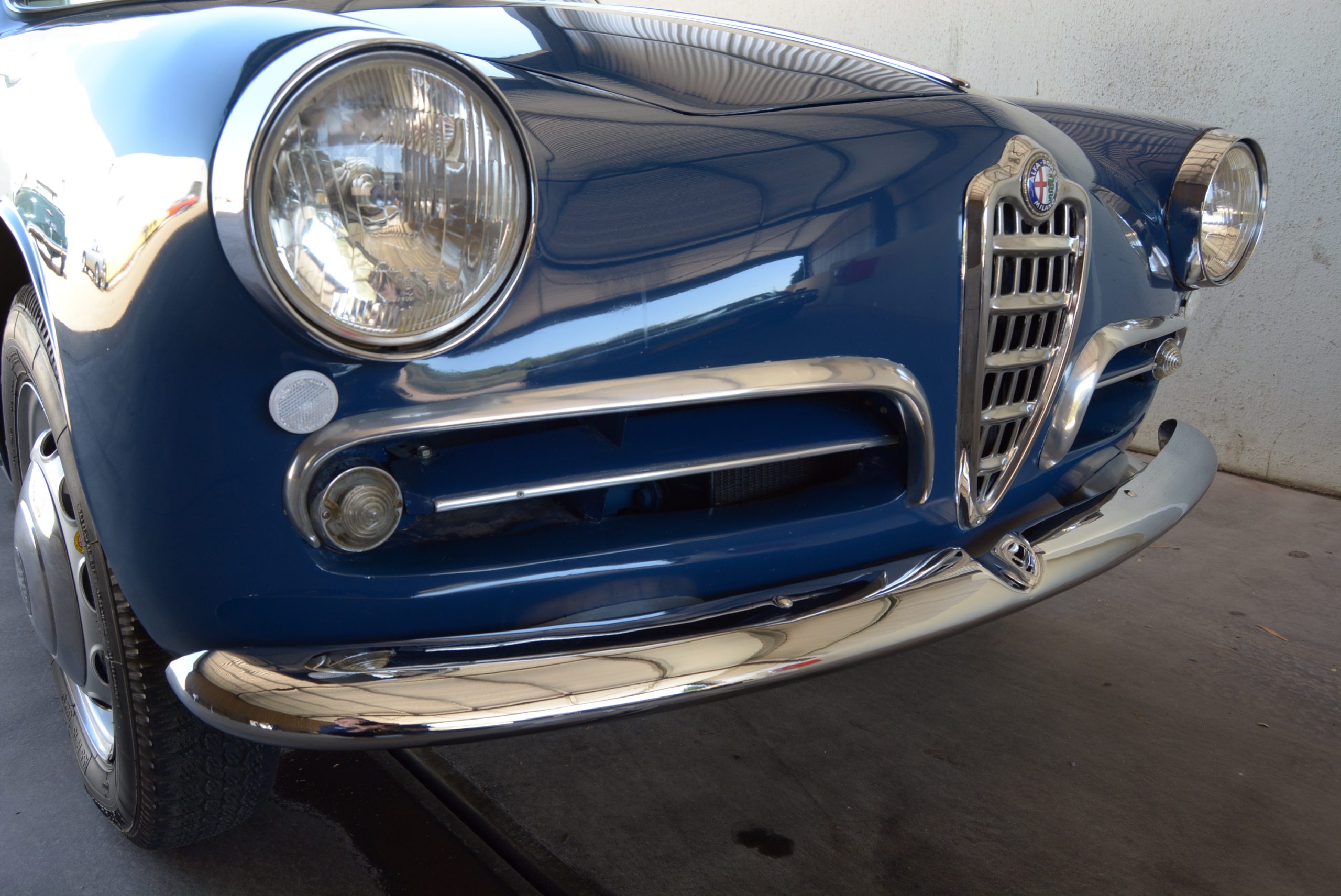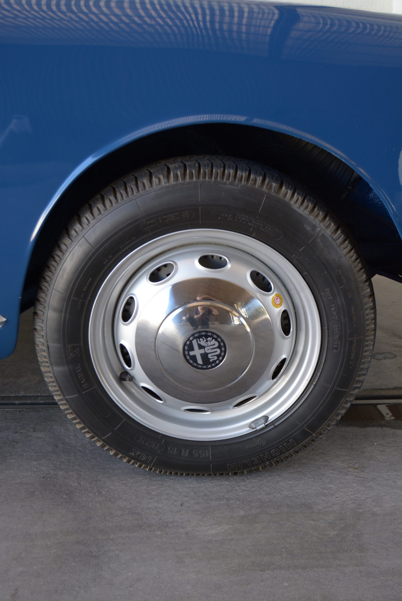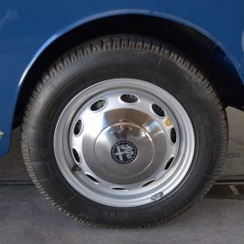 Front suspension was made up of control arms with coaxial coil springs and hydraulic dampers. The solid rear axle was located by a longitudinal link on each side, and a wishbone-shaped arm linking the top of the aluminium differential housing to the floorpan. Springing was by coils springs and hydraulic dampers. All Giuliettas, except for the last SZs, had large-diameter hydraulic finned aluminium drum brakes on all four corners. Wheels were 15-inch.