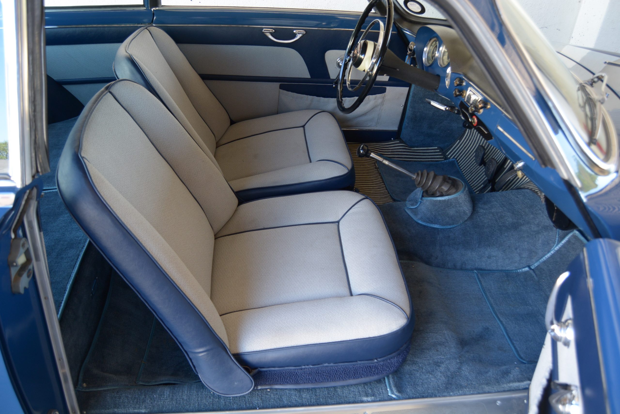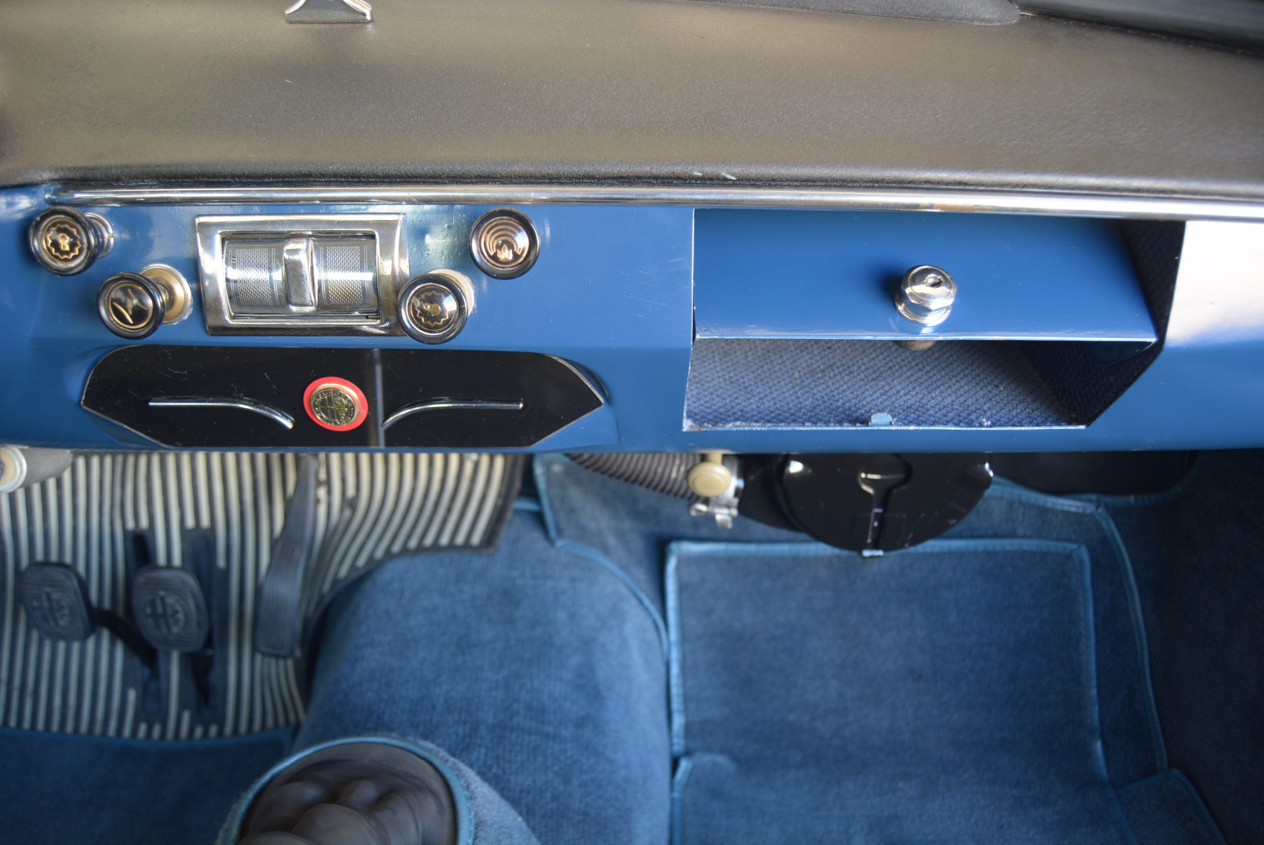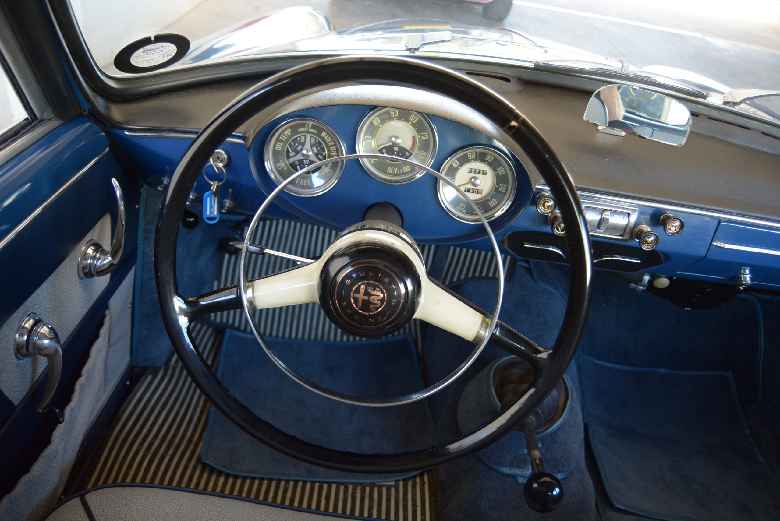 The motor fires up with a characteristic crackle that was a trademark of Busso’s design in all of its different capacities and states of tune. At launch the Giuliettas were fitted with an all-synchromesh four-speed aluminium gearbox with a column shift, which was replaced by a floor shift in 1957. The five-speed ’box only appeared in 1962 towards the end of the Giulietta’s 11-year life span, but at some time in its life, this car has inherited a five-speed, an acceptable – and it appears, only – conversion from standard.
