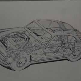 The Giulietta was a turning point for Alfa Romeo – it was the company’s first car aimed at the mass market, and the first to have a name rather than a cipher or a number. For technical reasons and a desire to maintain Alfa’s sporting tradition, the first Giulietta model (code 750E) was a compact two-door 2+2 Sprint coupé. From Satta’s base design, Bertone’s chief designer and engineer Franco Scaglione – who was responsible for the Alfa Romeo Disco Volante and BAT aerodynamic concepts – finalised the shape.