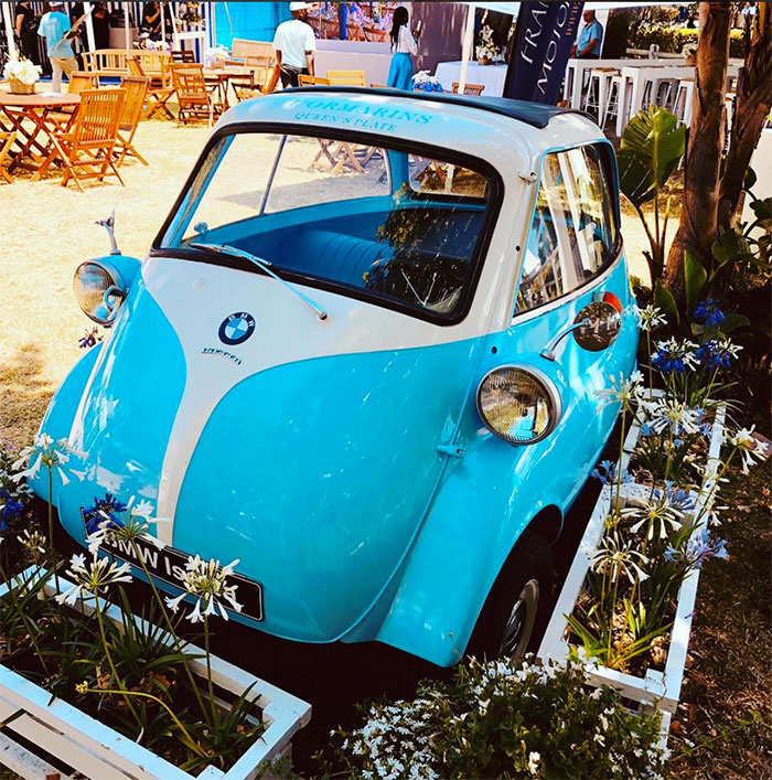 Bathed in sunshine throughout, the festival village offered many side attractions including numerous enclosures, gourmet stands and three best-dressed competitions, all to a background of live jazz from what seemed like every prominent band in the city. FMM once again joined forces with BMW as co-sponsors of the festival. Apart from providing a fleet of courtesy vehicles, some of the German manufacturer’s models were mixed with those from the FMM collection to showcase some motorised horsepower old, and new. The Style Village’s entrance gate was manned by FMM’s 1953 BMW 502. Inside the village, the first BMW i8 convertible to be imported into the country was on view alongside the FMM 1938 BMW 328, while the museum’s BMW Isetta was displayed in suitable attire. In full view of the grandstand was FMM’s Nelson Mandela 46664 2004 BMW 760Li Security Edition charity car alongside two representatives of BMW’s Rolls-Royce division, a 1928 Phantom 1 and 1935 20/25.