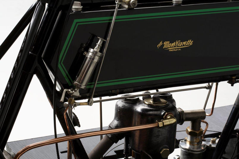 This month we take a look at what must be one of the rarest vehicles in the FMM collection – our 1904/5 Mars-Carette. I say this as I’ve never come across another example since I’ve been involved at the museum, be that in person, in publications or even on the web. Very little has been written on these rear ‘Forecar-type’ tricycles, and basically only states that they were produced between 1904 and 1905 by the Mars Motor Company at Finchley, London and should not be confused with Germany’s Mars-Werke AG that operated around the same time. This trike was Mars’ only model and was known as the Carette, a simple two-passenger vehicle where the passenger sat in front of the rider – ‘operator’ – in an exquisite wicker chaise-lounge type seat while the rider sits behind in a typical upright cyclist position.