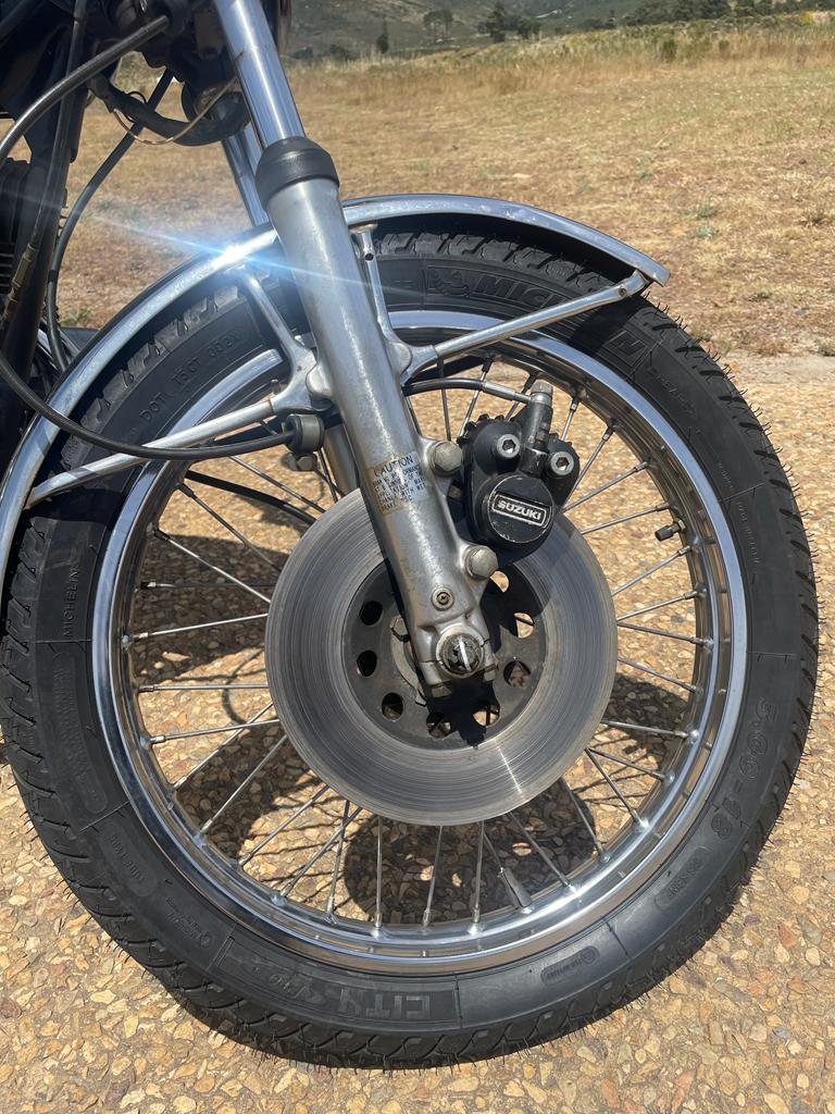 FMM’s workshop spray-paint maestro Michael Van Graan repaired the rusted fuel tank and resprayed it, along with the rear shock absorbers. Slowly, over the months, the restoration all started coming together. Then a couple of weeks back we started the little GT for the first time. It was a splutter and a spatter at first, but finally it was running sweetly again – with the smell of two-stroke oil filling the air. We found a replacement side cover on eBay and it eventually arrived in the post. The smart people in the spares division at Suzuki South helped me with the brake cylinder kit, which was made up of odd parts that would fit.
