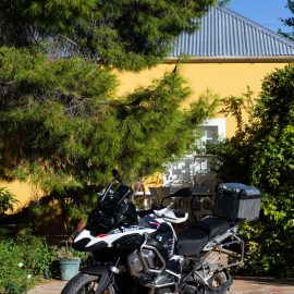 This was the third time I’ve ridden a 1250 GS, but it would be the first time for over a thousand kilometres, of which around 450 km would be on dirt. I was curious to see if the new 1250 GS Adventure had been improved since the first one I rode back in July 2019. I went to collect the bike on the Thursday before the trip, and since FMM is promoting 100 years of BMW Motorrad, I travelled on a BMW R50/5 that was recently donated to the museum by Daniel Prins and placed it on display at the Stellenbosch Motorrad’s heritage section. Once I collected the 2023 GS Adventure, it was off home to pack for the long weekend trip.