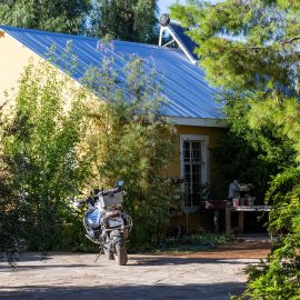 After coffee it was on to Sutherland and our first fuel stop. The big 1250 GS, even with two up and all our kit, was averaging 5,5 litres/100 km, which I found very reasonable. From Sutherland we turned towards Fraserburg, which was our first dirt road section and the GS ate up the 109 kilometres with ease. Alan Alyers from BMW Motorrad had pre-set the Enduro Pro riding mode for me in the dealership and, again, the 1250 GS never felt unstable, even at speed over 100 km on the dirt. By Fraserburg, the cold and rain had caught up to us again, and we just made it to our guest house, the quaint off-grid Marigold House, before the Karoo was blessed with some welcome rain.