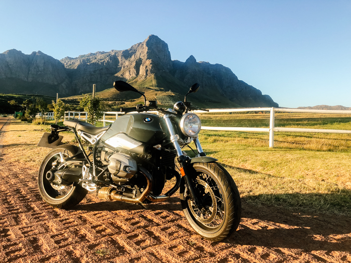 I collected it from the Cape Town showroom and if first impressions are anything to go by, the R nineT does catch the eye. It has a classic café racer look, simple and uncluttered but with BMW’s high-quality finishes. The R nineT represents 90 years of BMW motorcycle heritage, hence the name (albeit stylised), and goes back as far at the first 1923 R32 (the first motorcycle to be badged as a BMW). While the R nineT may look retro, it is very much a state-of-the-art machine focusing on BMW excellence and subtle design elements such as bead-blasted aluminum detailing, the aluminium headlight surround, the BMW logo in the headlamp, wire-spoke wheels and black rims.