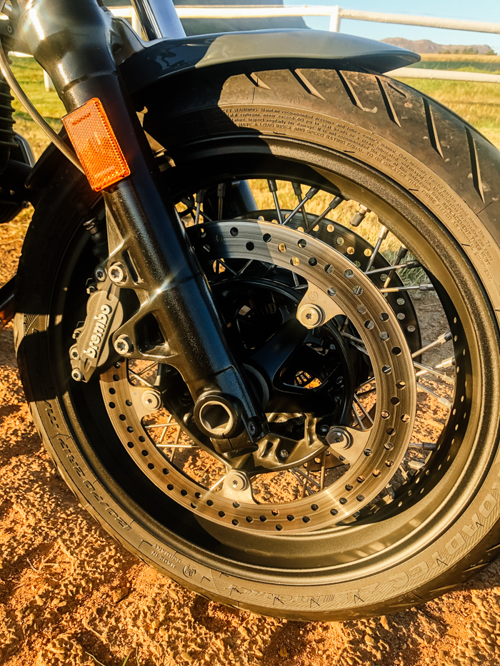My first ride was in 5pm traffic out of town, which is not the best way to start a test weekend – or maybe it was. I soon noticed how good the brakes are; Brembo 320 mm discs with 4-pot calipers up front, and 264 mm/2-pot at the back. The gearbox is sweet with smooth and precise changes. The motor is so torquey you could almost potter around in third and fourth only. The only thing I found difficult was not being sure of the bike’s width when there was gap in traffic, where I would normally slip through on an old British or Jap single-pot.