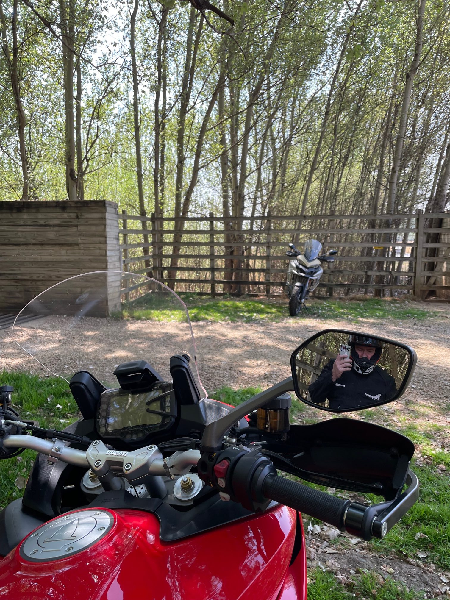 Just a year later in 2018, the 1260S and D were released, with riders looking for a more usable bike, the focus shifting to better torque in the low- to mid-range with nothing being lost when you needed it. Getting astride Mark’s bike, I found it had a very comfortable upright riding position and a manually adjustable screen. There are four riding modes – Sport, Touring, Urban and Enduro. The 119kW output is limited to 74kW in Urban and Enduro modes. The uprated electronic equipment is current even by today’s standards, based on the IMU inertial platform and composed of Bosch Cornering ABS, Ducati Wheelie Control (8 levels), Traction Control (8 levels) and cruise control. On the 1260S, Ducati has retained the Skyhook Suspension (DSS) Evolution system. And both models I rode had ‘quick shifters’ as standard.