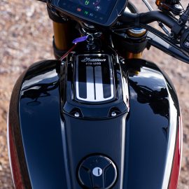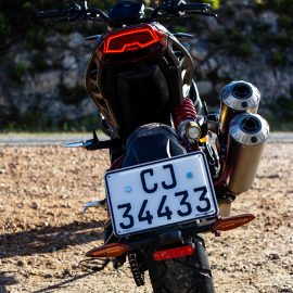 When compared to the likes of the KTM Duke or Ducati Diavel, the performance figures of the FTR seem a little below par, and yet it feels strong, pulling great through the revs. However, you must be quick with gear changes as the red line appears quickly. But the six-speed ’box and slipper clutch are on par with most other motorcycles. The FTR is very much a drag or sprint type bike and doesn’t have an impressive top end speed, but it does feel oh so strong. It was so much fun for the time I could use it, but travelling into a very strong Cape South Easter wind, applying just a little too much power does find you having to hang on, and that does become hard work after an hour…