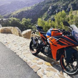 The KTM RC390 is a fun little bike… yes, I’ve said it, LITTLE! However, even with all the fun I had riding through Bain’s Kloof mountain pass, the bike always felt a little lacking and left me wanting that bit more, especially on the open road. It offers a comfortable riding position for a sports machine but, again, I felt just a fraction too big for the RC390. And that’s where the problem lies in the current KTM range: if you are seeking more power from a bigger engine, you need to look at the Duke model range machine – but you would have to spend almost R90 000 more.