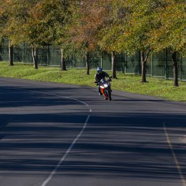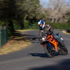 One positive is the 13-litre petrol tank costs only R350 to fill, and I managed 4,5 ℓ/100km during my stint despite not riding conservatively, which is very good news in these current times. The RC390 is a track-inspired motorcycle and looks every inch the part. The design is undeniable KTM with a style that evolves from the 125 Duke right up to the 1290 Super Duke, which were designed by Kiska, a company focussed on moving forward as their designs clearly show. The RC390 is fitted with the 373cc liquid-cooled multi-valve engine producing a healthy 32 kW that will happily rev to 9 000 r/min and reach a claimed top speed of 164 km/h, which is a little disappointing as the bike gives the appearance of being way faster. The engine note is very tame, and the bike should really have a voice to match its sporty looks. KTM states the RC390 has a throaty rumble, but standards have changed around the world and I’m sure it is as throaty as the Euro NCAP permits… As the unit I was riding had not quite been run in, I took their word on the top speed and simply enjoyed all 37 N.m of torque the engine produced in each of the six gears, which made the RC390 so easy to ride. Even if accidentally selecting one gear too high coming out of a corner, the torquey little single-cylinder will willingly pull from low revs and make up for any gear selection  errors.