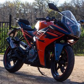 Handling is very good as the RC390 is light at 155 kg. It is also very predictable, making the rider feel as good as Brad Binder. Even on the standard Continental tyres, the bike always feels sure-footed and with the manageable power you can push on a bit. Braking is excellent, with 320 mm front and 230 mm rear brake discs plus Bosch 9.1 MP ABS providing safe and predictable stopping, even under emergency situations. Suspension comprises USD WP Apex 43 on the front and WP Apex –Monoshock at the rear. Incidentally, White Power Suspensions was acquired by KTM Motorrad Holdings back in 1995 and is still part of the group to this day.