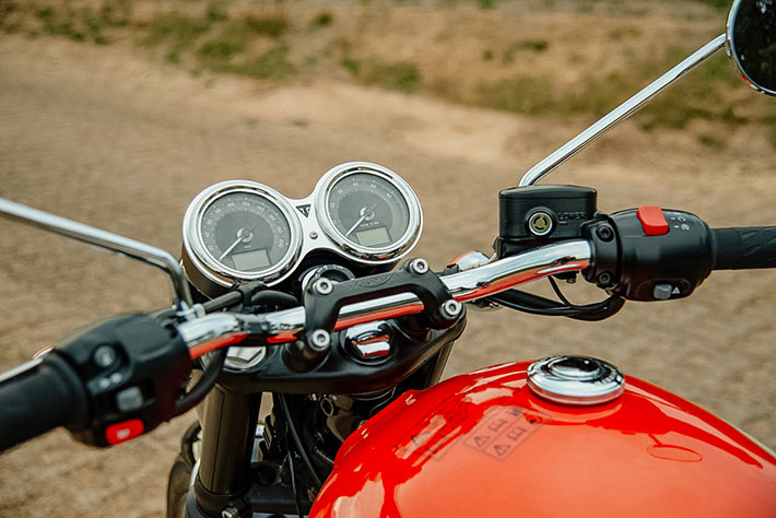 Having been privileged to have ridden many British bikes from the 50s and 60s, I found the riding position familiar as I settled onto the saddle. As has become the pattern, my first encounter with the bike was in Friday afternoon traffic, and as with most of the other retro bikes I have ridden, the Triumph makes a great commuter with its narrow girth that allows one to slip easily through the congested five o’clock traffic with space to spare. Having 80 N.m of torque at 3 250 r/min precludes having to constantly change gear. With a very comfortable seat height, I found even standing at rest in traffic was no problem.