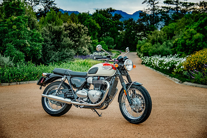The following day I headed up and over the Franschhoek Pass where Triumph’s sporty heritage came through. Yes, I know this is no superbike; the 900 cm3 engine pumps out 40,5 kW @ 5 900 r/min via a contemporary chain-and-sprocket drive. However, if you consider the tubular steel frame is still basically similar in design and geometry as the ’60s machine, then cornering and straight-line stability is very impressive – or was the old bike just that good? The KYB front and adjustable rear suspension is also up to the job, and if you don’t mess with the traction control, the bike will remain rock solid through the bends even if you’re pushing it a bit.
