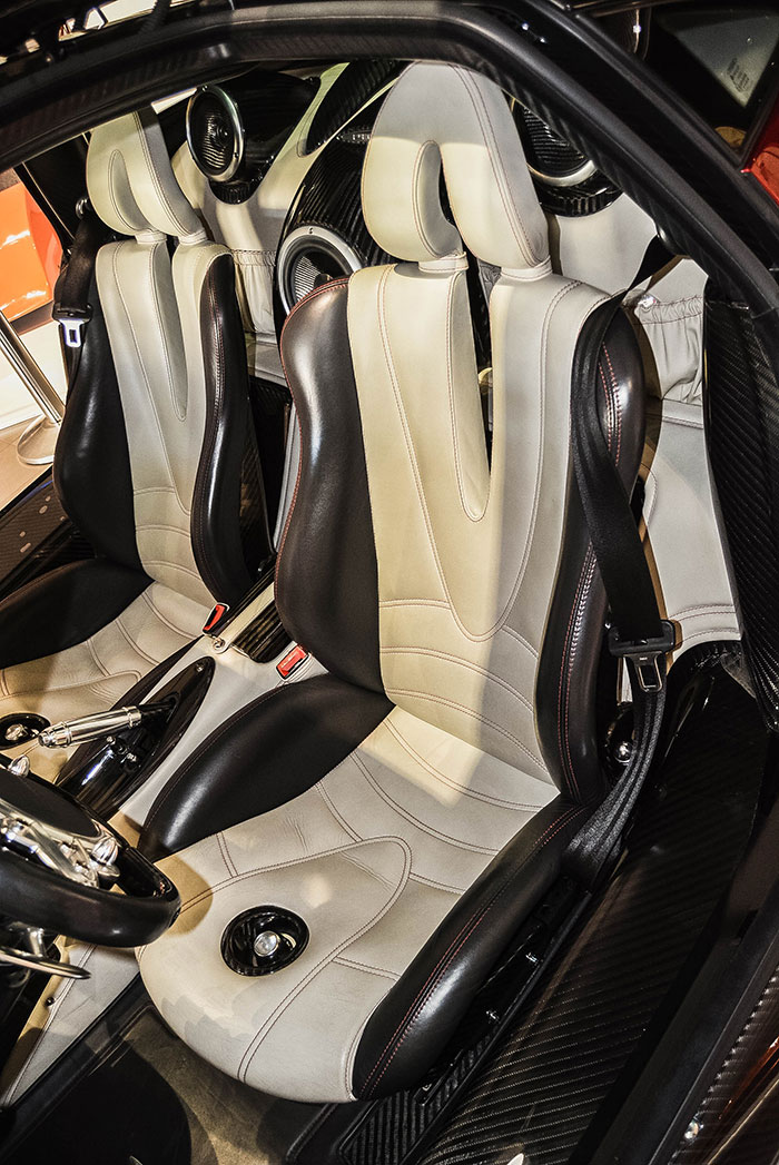 The concept was born in 2003, the year of the introduction of the Zonda S Roadster. Since the original design of the Zonda was done in the early 90s, Pagani decided it needed a new car totally different in form, dimension, dynamics and technology. “Leonardo da Vinci told us that art and science are disciplines that need to walk alongside,” says company founder Horacio Pagani. The concept was for a longer silhouette that the Zonda with a track increased by 70 mm, and a cabin position shifted rearwards by 40 mm to offer more space.
