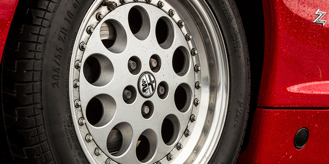 The SZ is built on a shortened version of the rear-drive Alfa 75 floorpan combined with the suspension of Alfa’s 75 Group A/IMSA race car. A full-width rear wing increases downforce. The bodywork is a composite of thermoplastic resin reinforced with glass fibre that is bonded to a steel body shell with special adhesives.