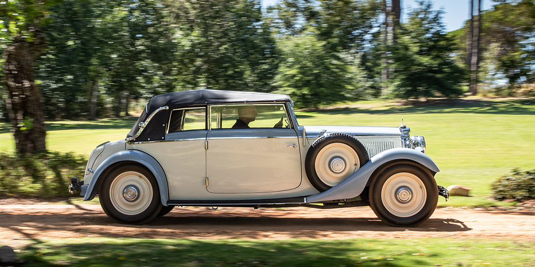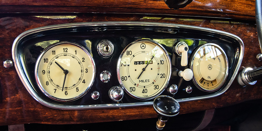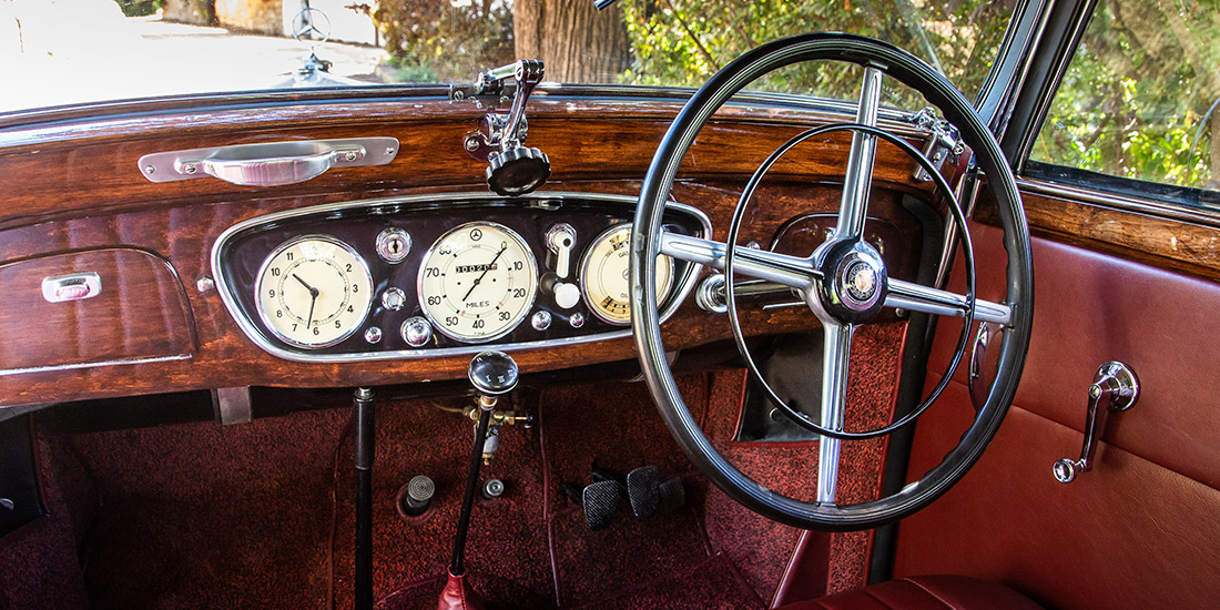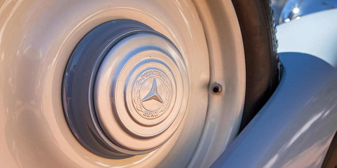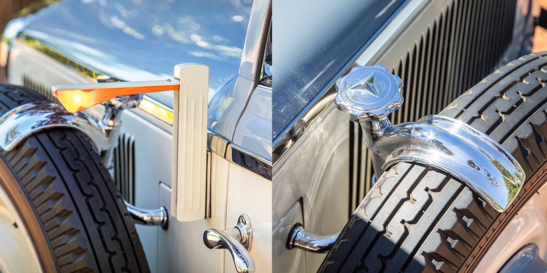 Initially, the choice of body styles was limited, but in February 1934 a significant revamp took place. Along with a subtle reshaping of the radiator, a 350 mm-longer wheelbase chassis was introduced and the model range increased to include no less than three different cabriolets. This car is a 1934 Cabriolet B model and benefits from the longer wheelbase1934 Cabriolet B, that allowed for spare wheels to be housed in the fenders on both sides close to the exposed indicator arms. It was originally acquired by the Rembrandt Corporation in 1979 before becoming part of the Heidelberg Motor Museum, which, in turn, was the foundation of FMM’s collection.