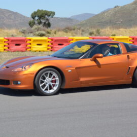 This time Sabine really got into the spirit of the car, steering as much with the accelerator as she was with the wheel – “I love drifting” – each slip and slide bringing on a burst of laughter from us both. “Love the seven-litre engine. Everything is perfect, brakes are really good, nothing to complain about. Every lap was the same. I had fun!” were her immediate post-run comments. In the post-shootout wrap-up, Sabine always mentioned the Corvette and rated the car third out of the demon dozen cars that were tested.