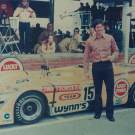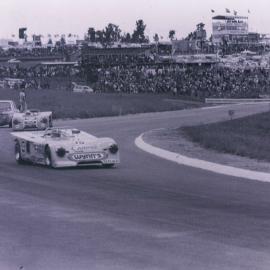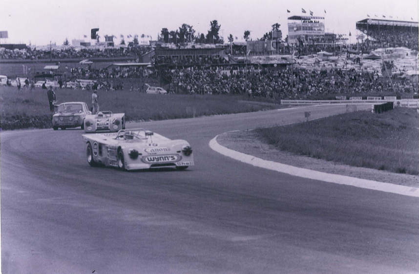 At the end of 1971, Jody was back in SA taking part in the 9-Hour sports car race at Kyalami, sharing a Team Wynn’s Chevron B19 FVC with Dutchman Ed Swart. They got as high as third place before the car’s clutch burnt out with an hour to go, but they had covered enough distance to be classified 14th. Pic shows Jody entering The Esses ahead of the Team Gunston Chevron B19 FVC of Mike Hailwood/Chris Craft and the Renault R8 Gordini of Alan Lavoipierre/Bob Delport.