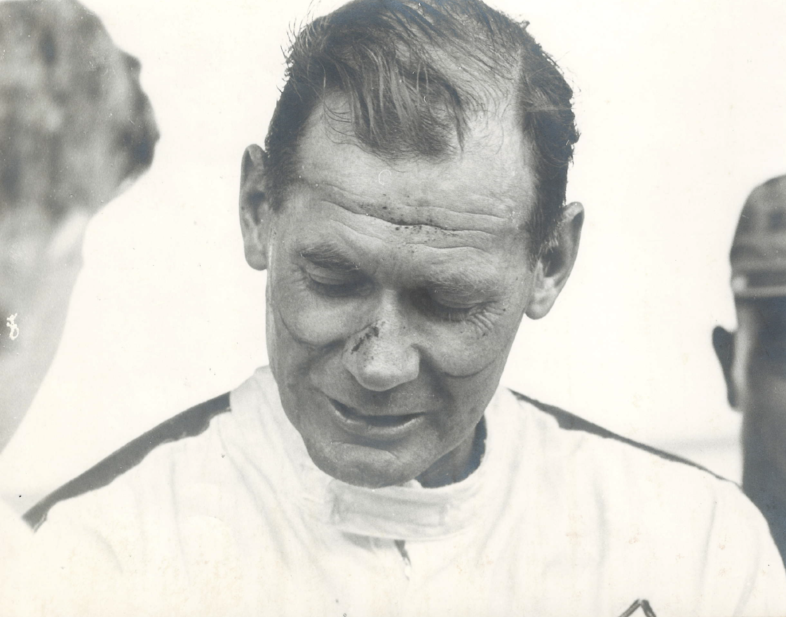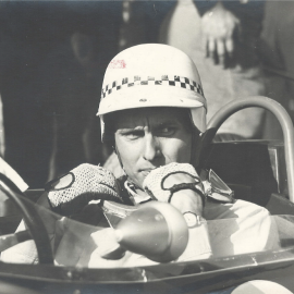 Another local star, Peter de Klerk, in his distinctive helmet pictured at the 1964 Rand Spring Trophy at Kyalami.