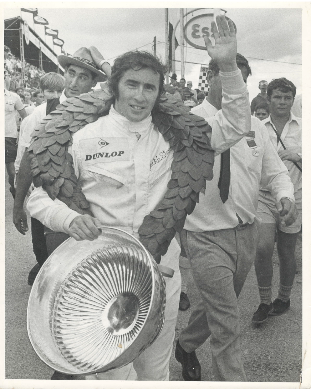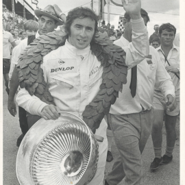 Jackie Stewart with the victor’s laurels after winning the 1969 SA GP in his Matra-Ford.