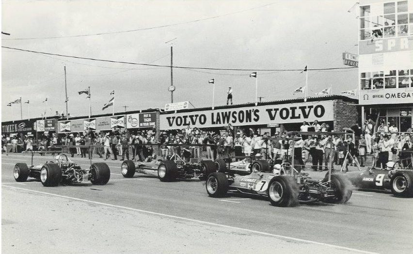 It has been 55 years since Kyalami hosted its first F1 GP so this month we look at some images of the first handful of races that took place at the Midrand circuit. The first Grand Prix to be held at Kyalami was in 1967 and the pic show John Surtees Honda RA273 leading eventual winner Pedro Rodriguez’s Cooper T81-Maserati V12 through Clubhouse Corner. In 1968 Jim Clark was the winner in his Lotus 49-Cosworth V8. The start of the 1969 GP shows pole man Jack Brabham (Brabham BT26A-Cosworth V8), Jochen Rindt (Lotus 49-Cosworth V8) and Denny Hulme (McLaren M7A-Cosworth V8) on the front row, ahead of eventual winner Jackie Stewart in car 7 (Matra MS10-Cosworth V8) alongside Chris Amon (Ferrari 312 V12). Imagine what the hoo-hah would be about those wings today… Next, 1970 winner Jack Brabham (Brabham BT33-Cosworth V8) overtakes Jacky Ickx (Ferrari 312B V12) on the inside of Crowthorne, with Jean-Pierre Beltoise (Matra MS20 V12) leading the chasing pack. And finally, SA’s Jody Scheckter at the wheel of his Tyrrell 007-Cosworth V8 in the 1976 GP in which he finished fourth. The car is a progression of the 1974 Tyrrell 007/3 that is part of the FMM collection and currently on display in Hall D.