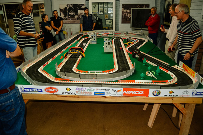 On April 24, nine members of the FMM team went to Killarney Raceway clubhouse to take part in the inaugural slot car club meeting at the Cape’s famous motor sporting venue. The two-lane track is the initiative of classic saloon-car racer Jonathan Gunn and replicates the Killarney circuit, and it proved to be as challenging as the real raceway. After a series of friendly challenges, Thys Roux recorded the most laps in the 2×3-minute heats with his Maserati Trofeo, with Mike Monk’s Ford Mustang second and Jonathan’s Gulf Porsche third.