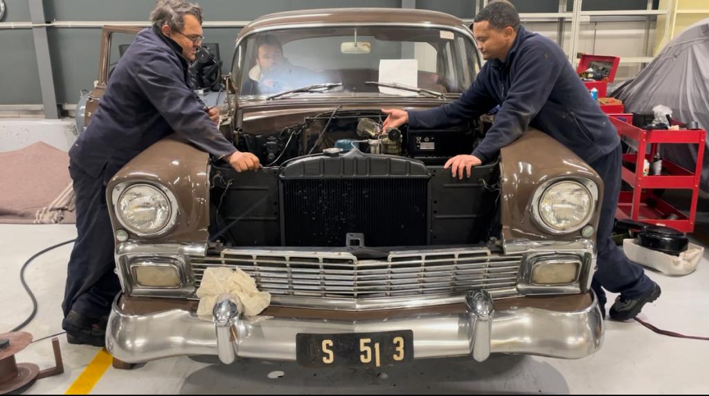 During the mid-fifties, Chevrolet’s mid-range 210 series shared the shiny body-side trim with the range-topping Bel Air, making it difficult to distinguish between them to the untrained eye. It did not, however, include the gold-tone accents and ribbed aluminium body-side trim wedges. While some were fitted with Turbo-Fire V8 engines, most 210 cars were equipped with a base 235ci (3 851cc) six-cylinder Blue-Flame engine. One of the planned projects for the FMM workshop included one of these Chevrolet 210s, a chocolate-coloured 1956 sedan. Michael van Graan was tasked with managing the project.