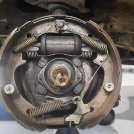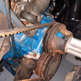 Once the car was in the workshop, Donnie started by checking if the engine turned freely by hand, which it did. Encouraged by this, he cleaned the carburettor and spark plugs before connecting a gravity-feed can of petrol to see if the car would turn over and start on its own power. After some trying, the Fairlane fired up and idled long enough to warm up the engine oil a little so it could be drained properly, and also to check what systems, if any, needed attention. The water pump was immediately identified as needing a replacement and a new one was ordered along with a new petrol pump, spark plugs, coolant hoses, air and oil filters.  Donnie then removed the carburettor again to clean and fit a brand new carb kit. While waiting for the parts on order, Donnie removed the brake system components and sent them away for overhauling and a set of brand new flexible hoses to be made up.