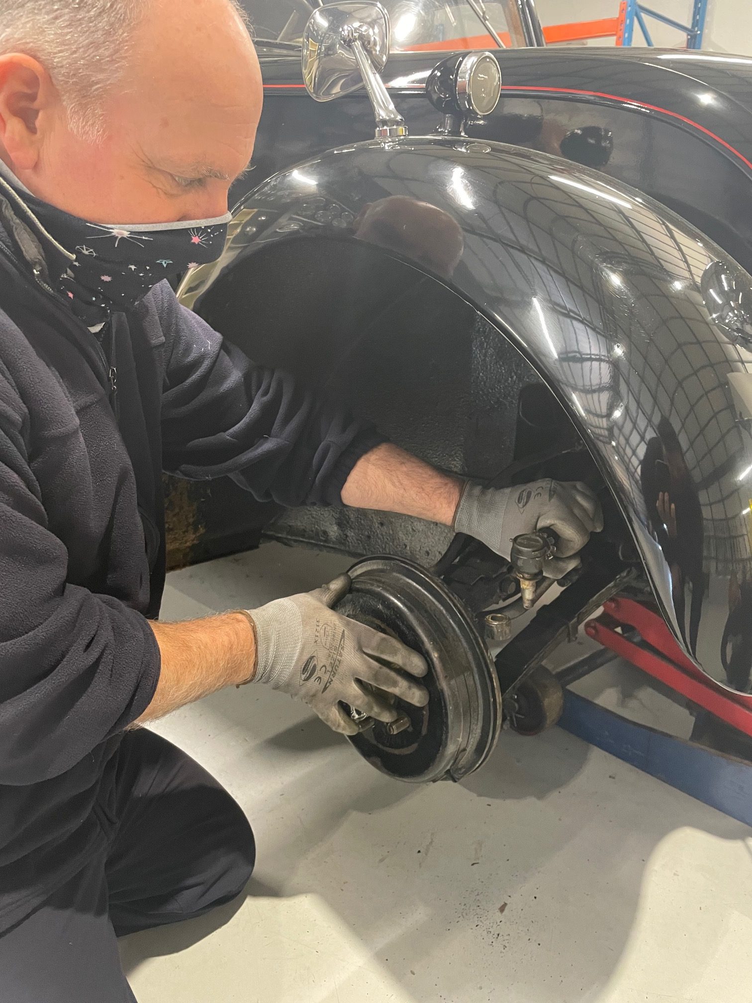 With the rubber steering coupling on the museum’s Mercedes-Benz 130H recently replaced, wheel alignment was required to ensure proper tracking. Workshop manager Lorenzo Farella took the time to show the team how to ‘string’ the car. The method requires four jack stands, weights, a ball of string and a tape measure. Or a builder’s line and a Vernier caliper in Lorenzo’s demonstration.
