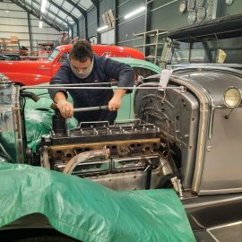 Having very limited documented history, it was unclear exactly how long it had been since the museum’s Model M Roadster engine last turned over. The car’s coachwork presented well, but the in-line eight-cylinder engine would not turn. This is always a worrying sign, as it almost inevitably means an expensive project is at hand. Nevertheless, the Hupp was taken into the workshop for further investigation, on condition that it could be fixed within a budget – times are hard in this COVID period – and to only replace what was absolutely necessary.