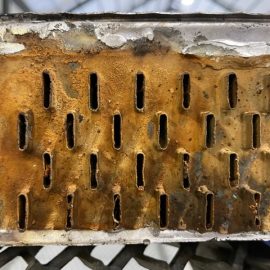 Looking at the block, it was clear that the rings had rusted in the bores, so a patient process of freeing up the pistons commenced. Over a few days, a sequence of penetrating oil, fresh vinegar and electrolysis was applied to the bores.  While the rings were soaking up the various forms of releasing agents, attention turned to the auxiliary equipment including the water pump, hoses, carburettor and Autovac fuel pump. Each of these was given a proper scrub and the more delicate parts placed in the ultrasonic bath to ensure as much of the loose dirt as possible was removed. Michael repainted each item that required it.