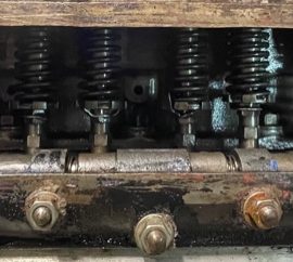 I then refurbished the water pump, while Michael helped with some tinning on the old radiator after unblocking a few cores, and also tinned the fuel tank. The Autovac was assessed and Donnie and I managed to get the internals to work as they should. Next, various other gaskets were traced out and punched from Velomoid. Although the valves moved freely after getting the engine to turn, they looked rough and had rust at the seats. The valve assemblies were removed and each valve then polished on the bench, lapped into the seats then reinstalled and adjusted according to settings obtained from a gentleman in the antique furniture business, who happens to own a similar Hupmobile.