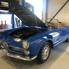 The 102-series Alfa Romeo 2000 Spider is an exquisite classic, designed by the Italian coachbuilders Carrozzeria Touring of Milan. The museum’s example is from 1960 and is finished in blue. After a recent drive, it was found that the car was not running 100% and needed some attention. JP du Plessis was tasked with getting the car back to good health.