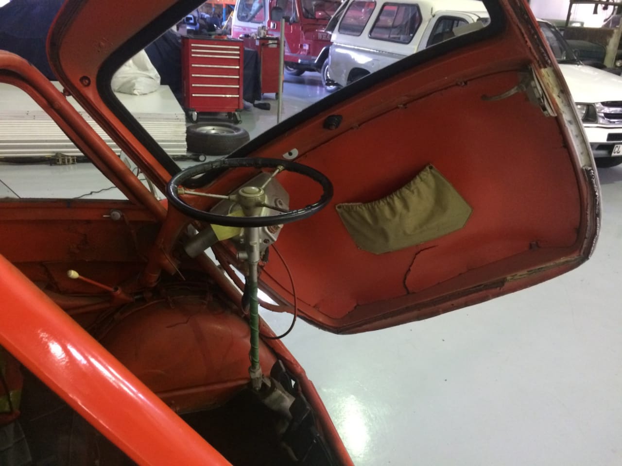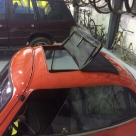 With the exterior looking fresh, attention was turned to the interior and its bits of trim. The seat was recovered with new grey vinyl and a brand new ragtop sunroof was installed.
